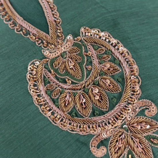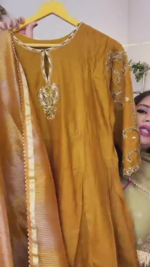 Beautiful Embroidered Mul Chanderi A-line Full Suit Set with Tissue Dupatta