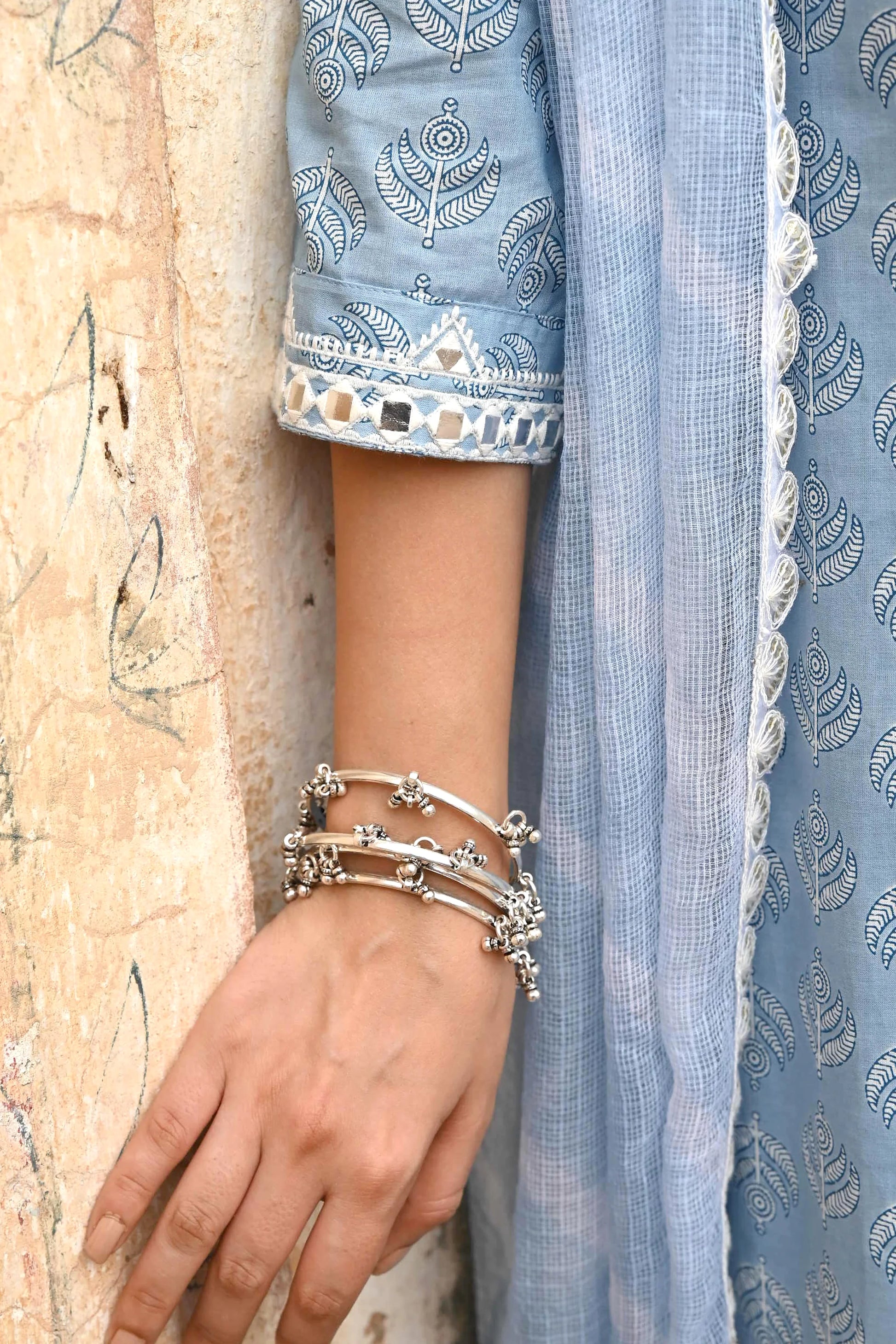 Blue Embroidered Cotton Kurta Pant Set With Dupatta