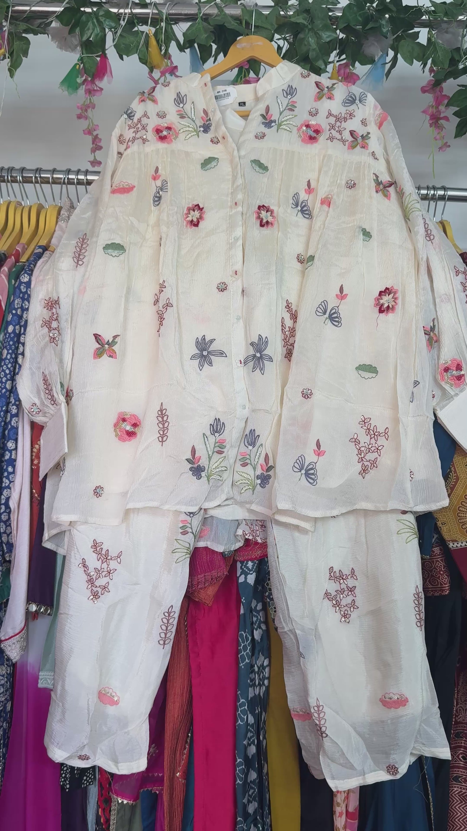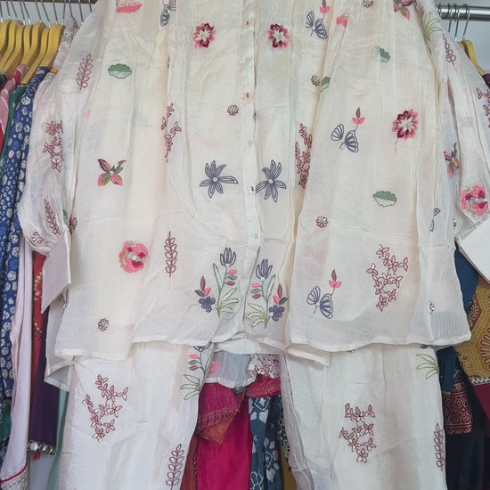 Cream embroidery chinon co ord set