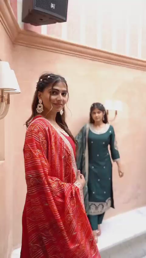 Ethnic Bandhani suit in 3 beautiful colours