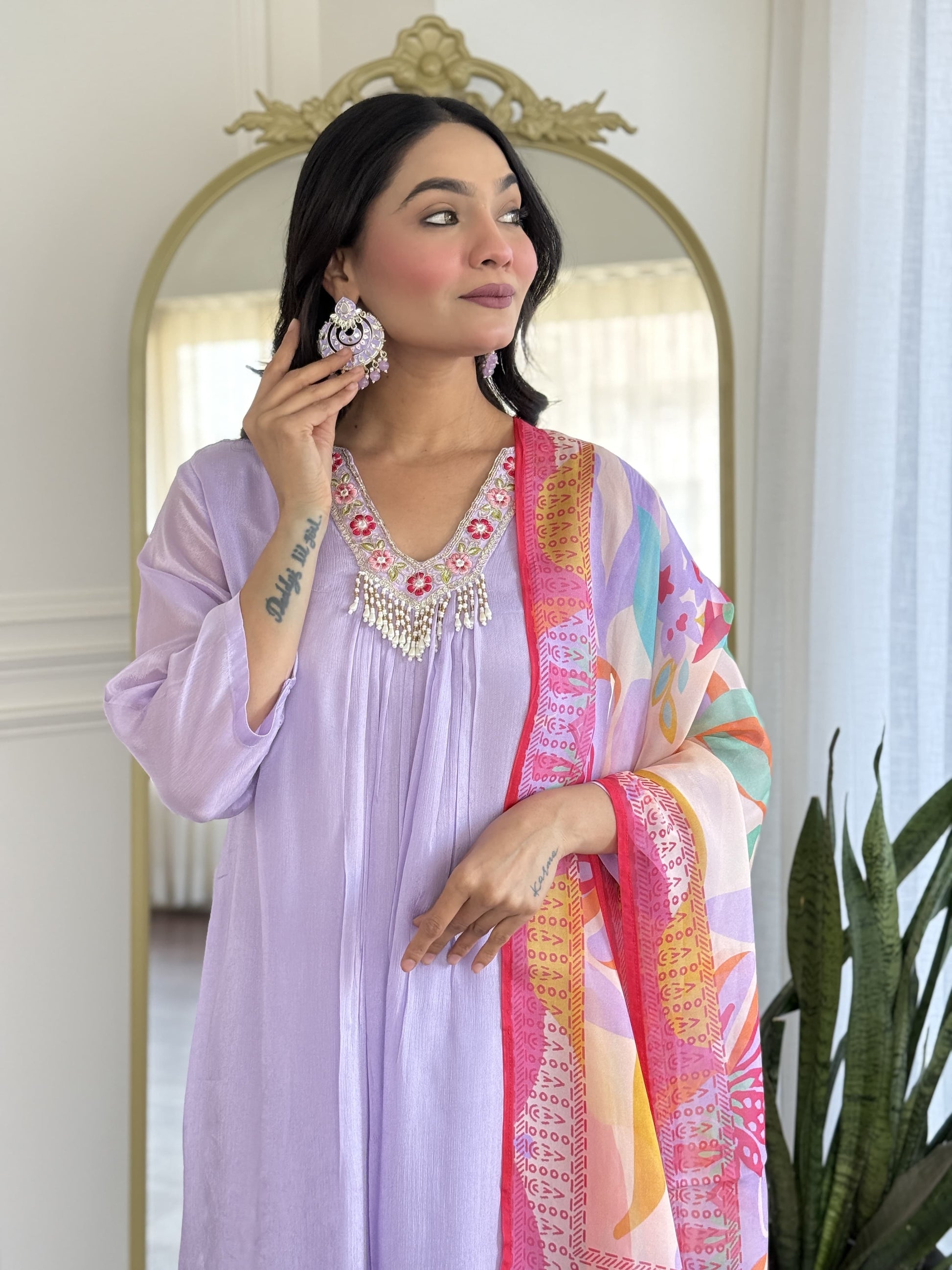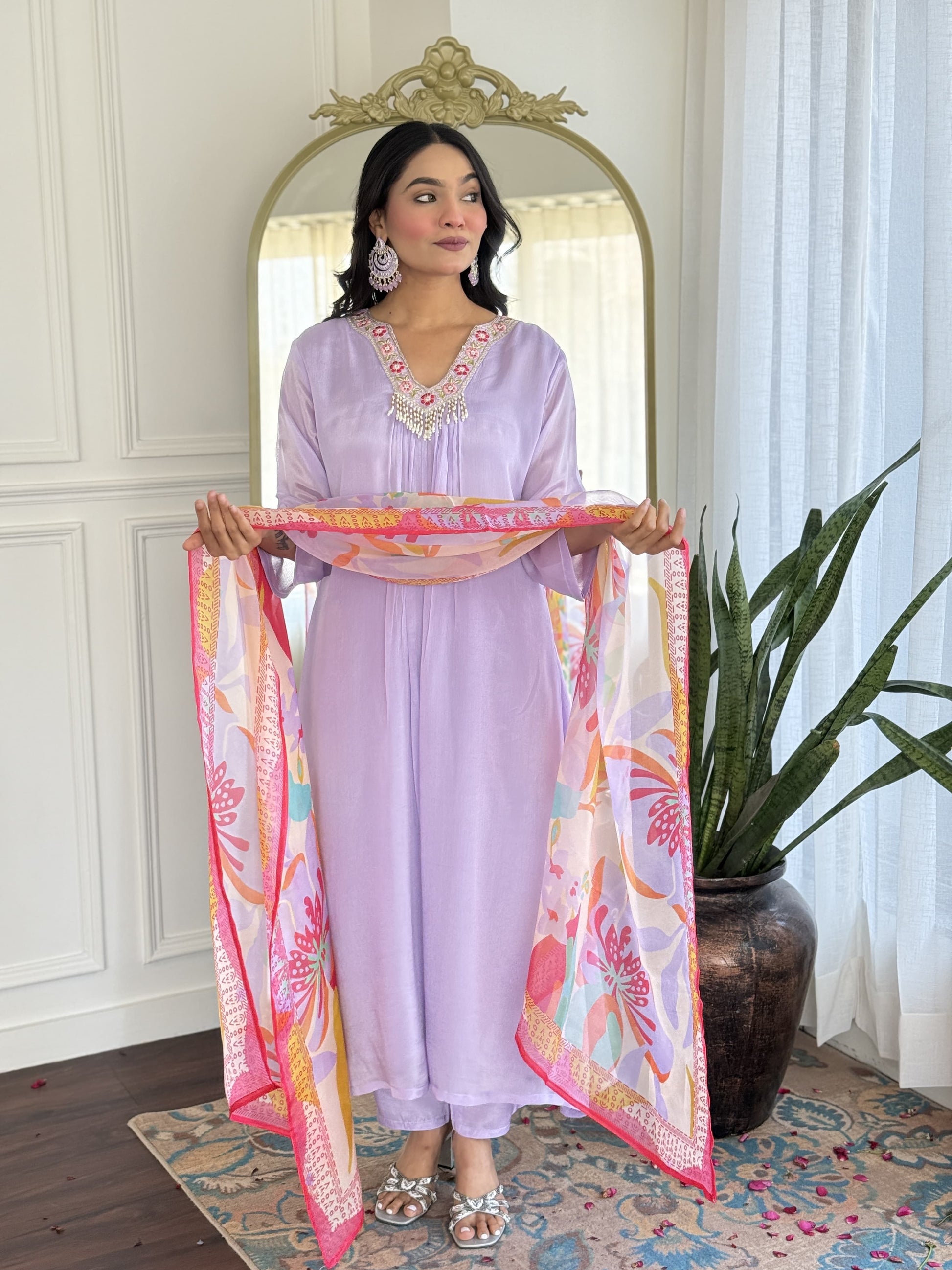 Lavender chinon Aline suit