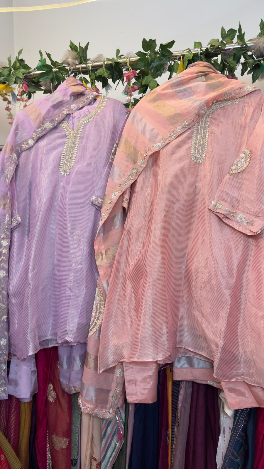 Luxe tissue Farshi pants with short Anarkali suit