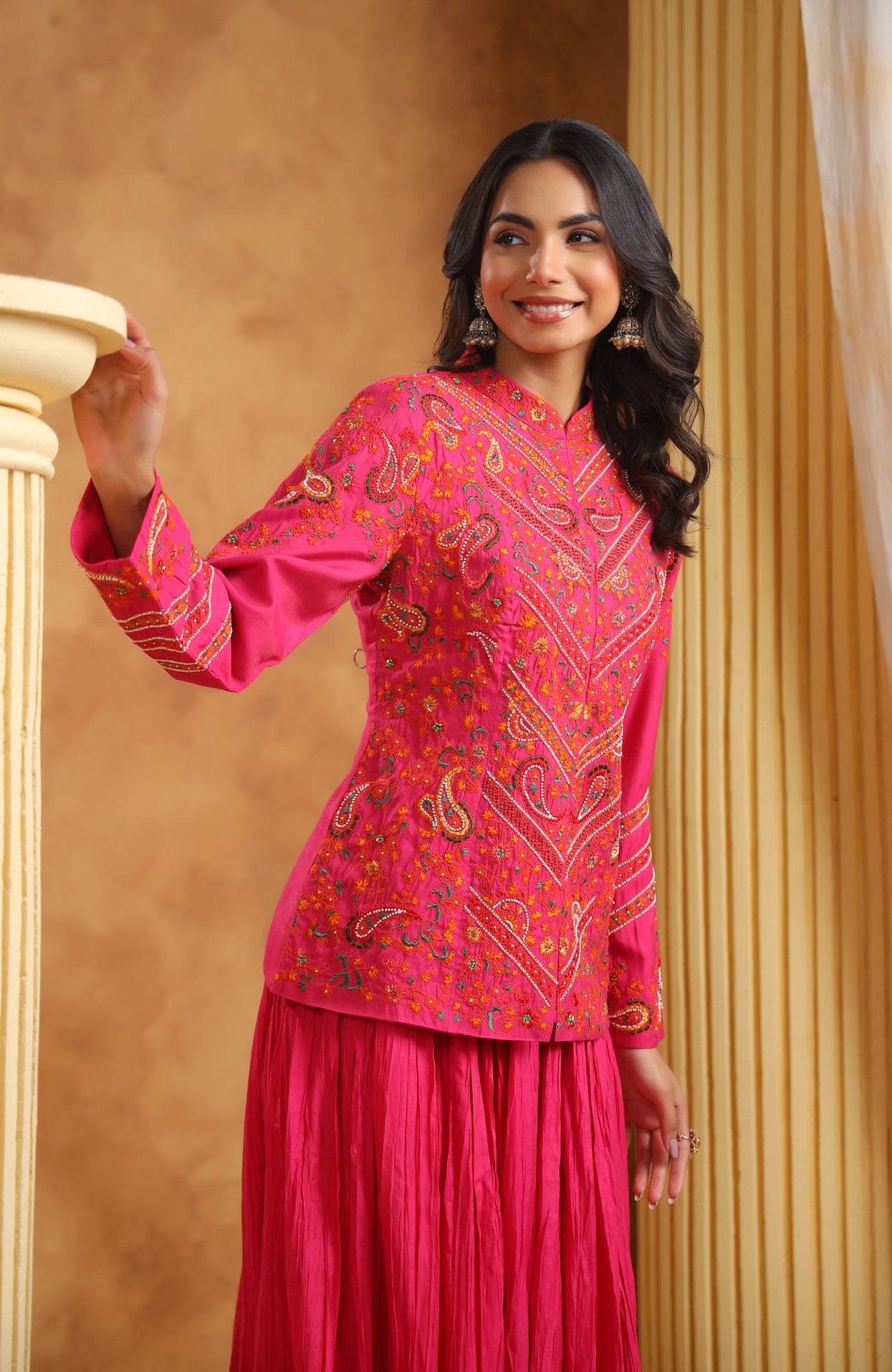 Details: Premium Chanderi Lehenga With Handwork Embroidery On The Top.