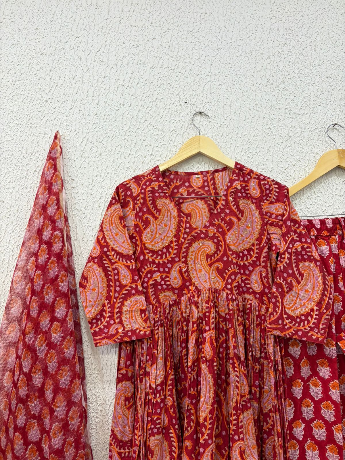 Ritu kumar print Cotton Anarkali pants with kota doria dupatta