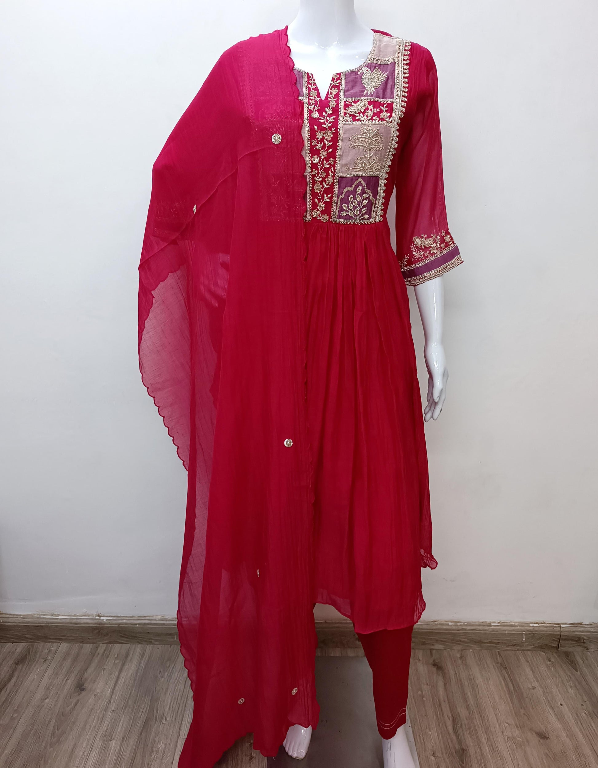 ✅Premium Mul Chanderi Dress With Zardosi & Appliqué Handwork On The Yoke