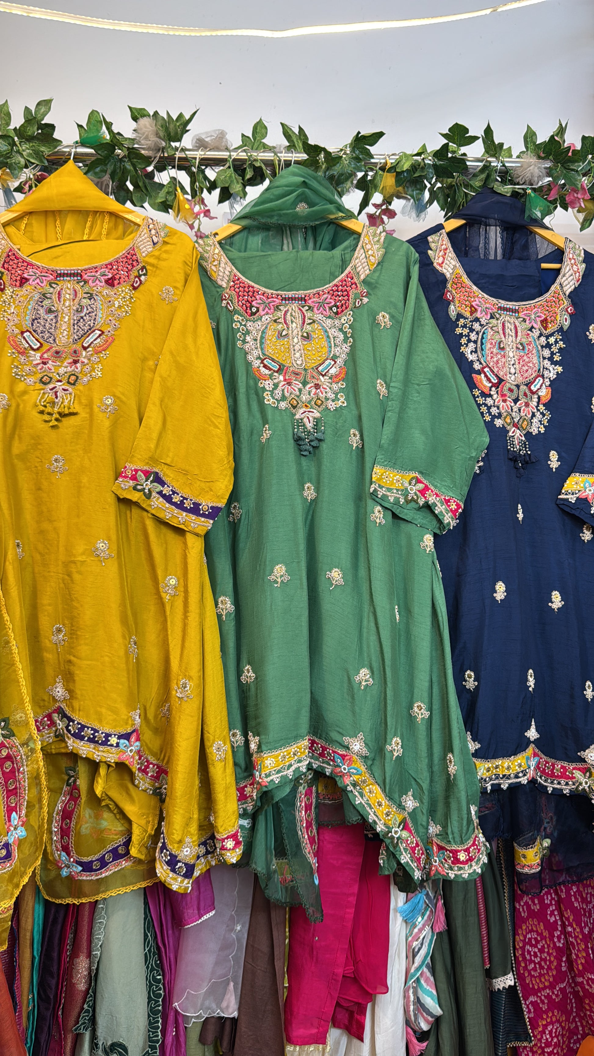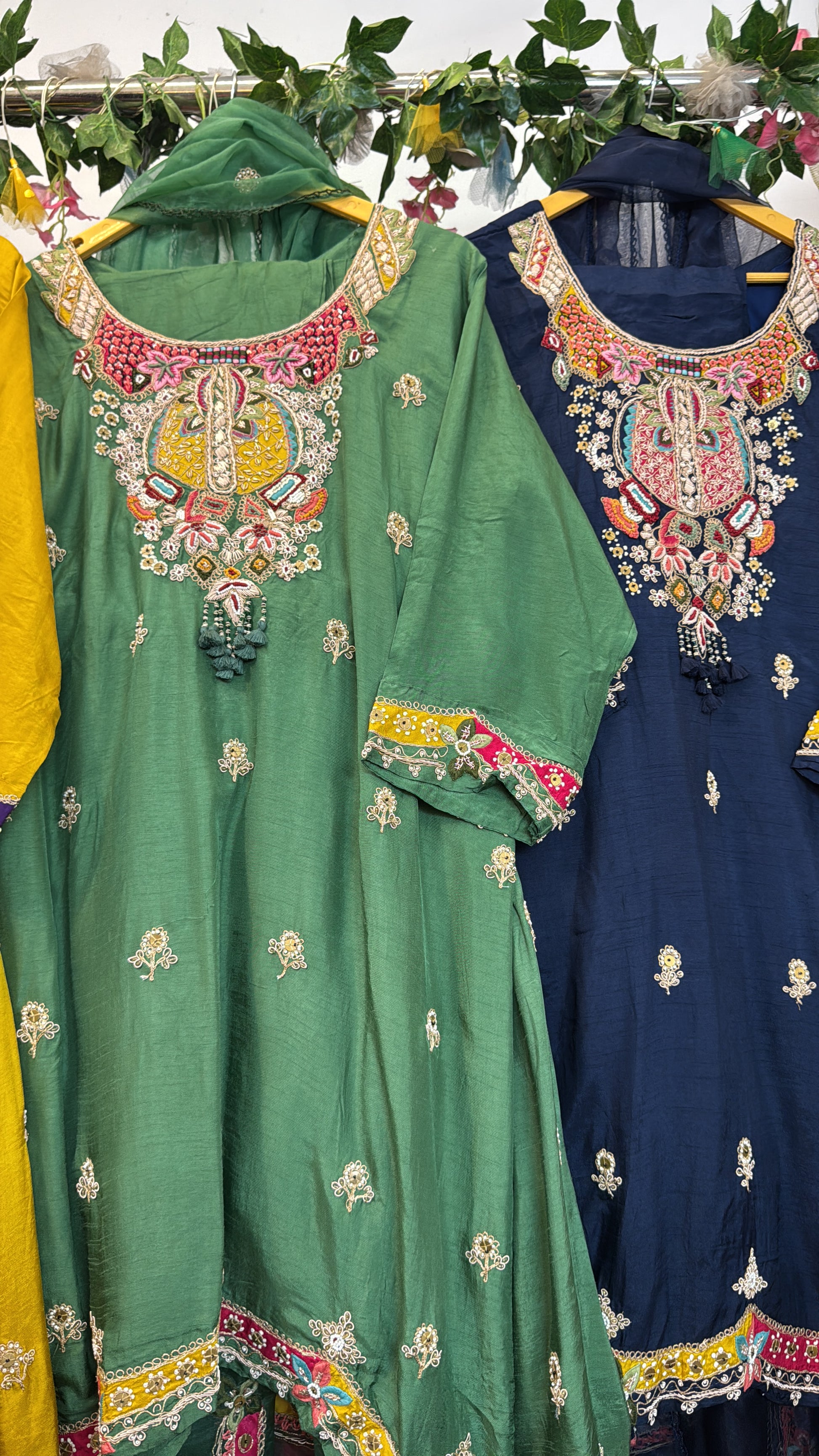 Short appliqué premium silk Anarkali suit with organza Dupatta