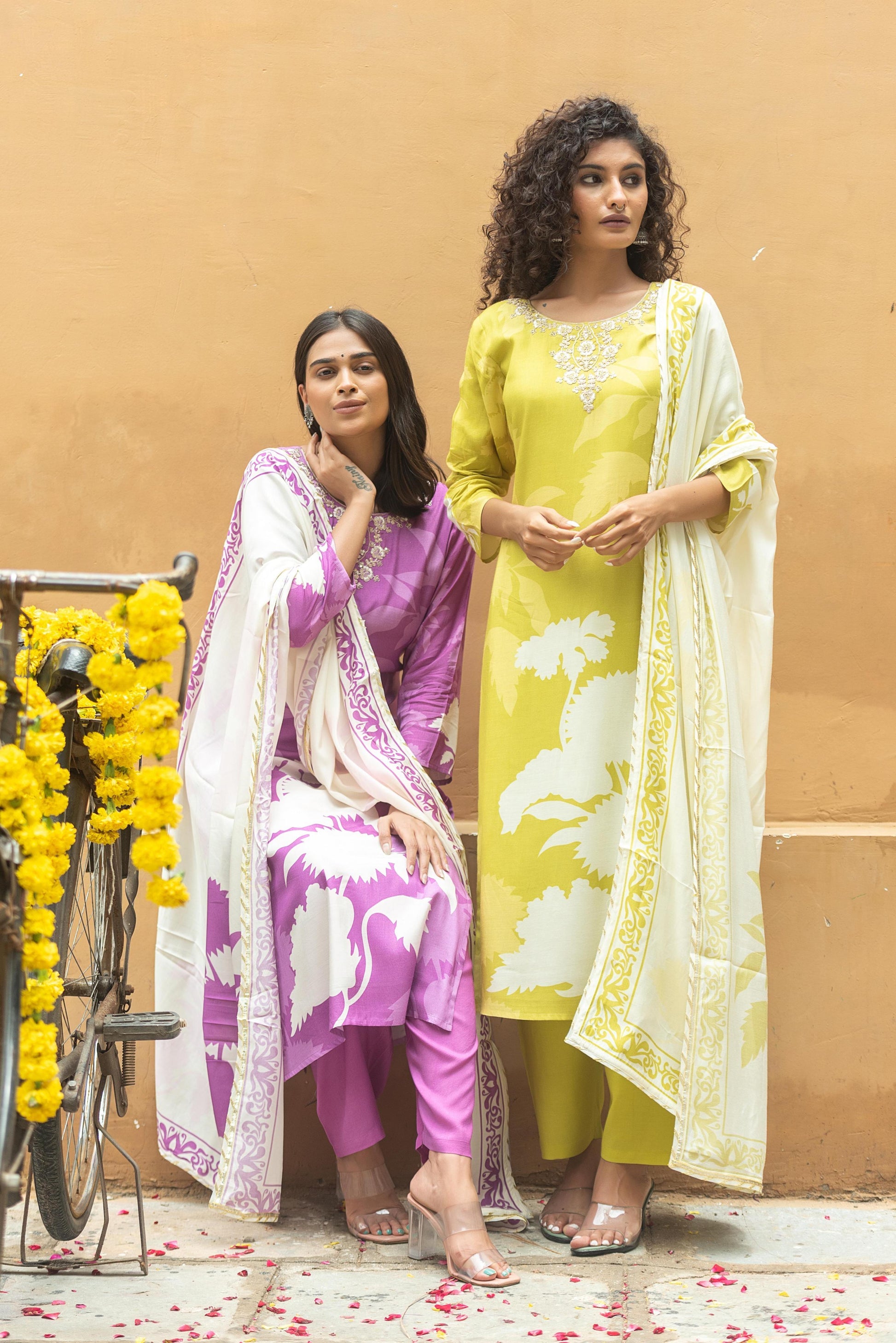 Softy purple/green muslin suit