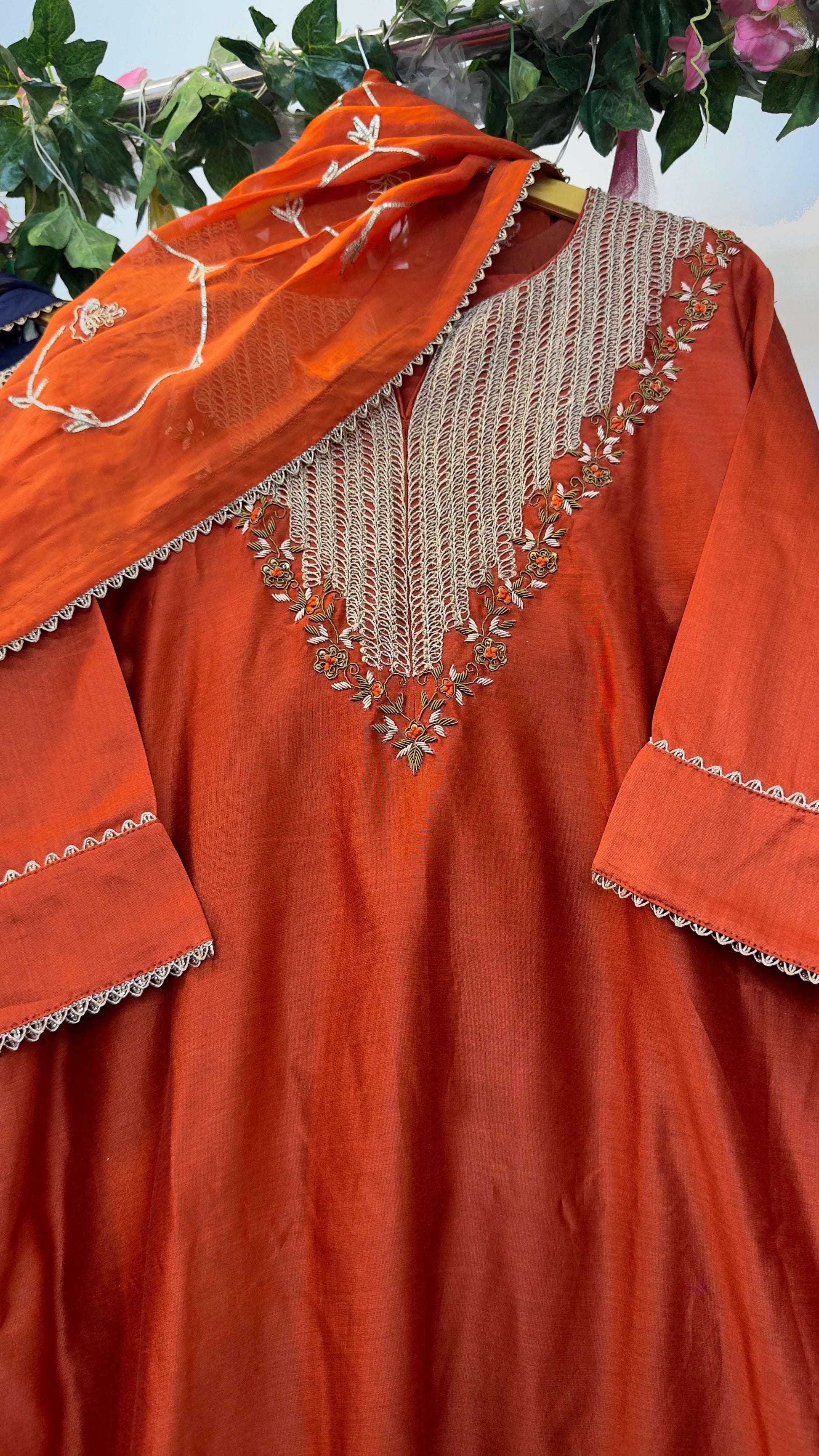 Heavy duppata with premium mul chandari silk suit with staright pants