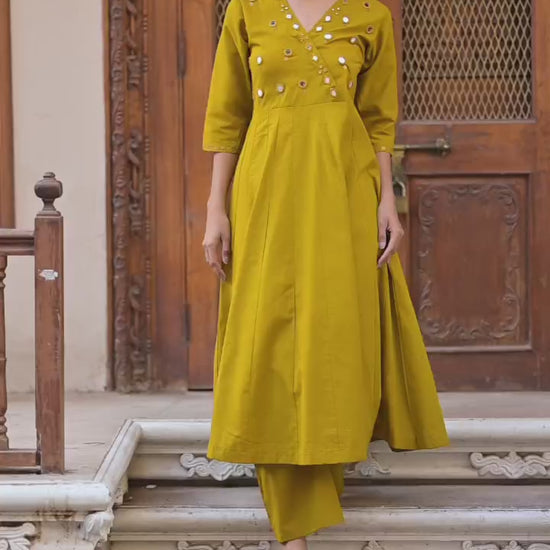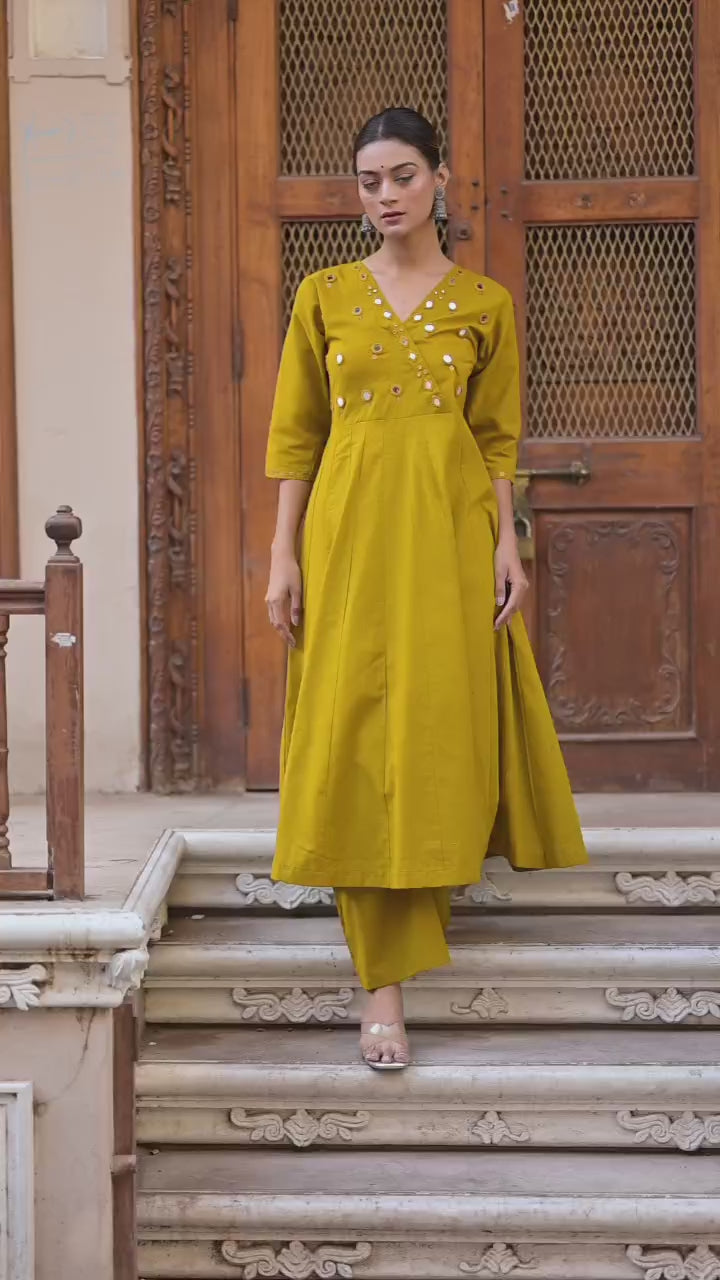 Yellow Real mirror Anarkali